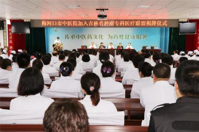 2019年12月25日,梅河口市中医院加入吉林省肿瘤专科医疗联盟揭牌仪式隆重举行。应邀出席揭牌仪式的有吉林省肿瘤医院党委书记程颖,梅河口市副市长于艳玲,梅河口市卫生健康局党组书记、局长刘铁民等领导专家以及梅河口市中医院干部职工。